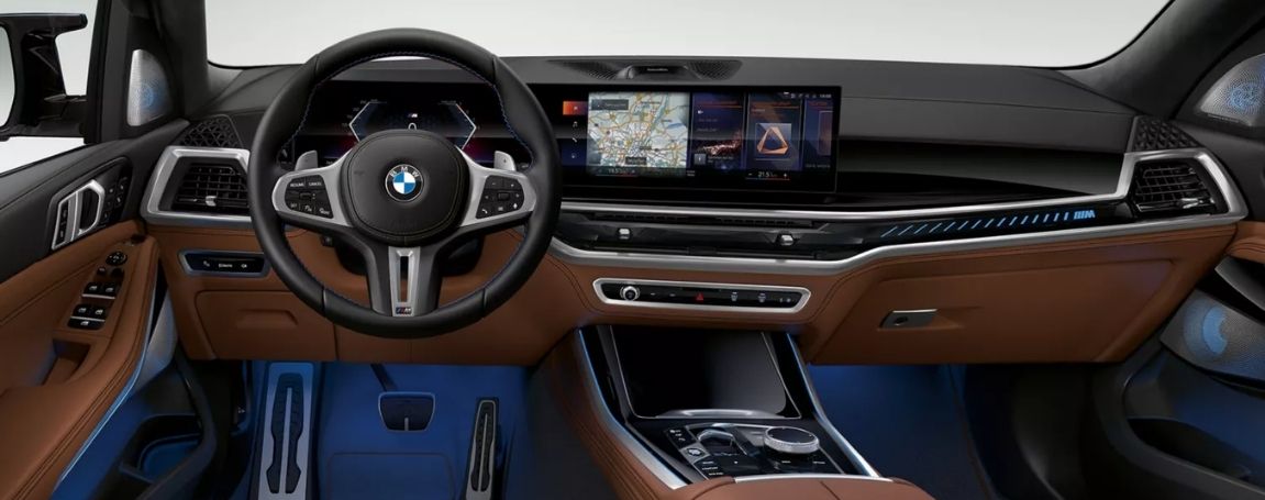 Inside the X5, the cabin feels modern, airy, and meticulously crafted. The BMW Curved Display blends high-resolution infotainment with intuitive controls, and the customizable ambient lighting allows you to set the perfect mood. For drivers who love refined materials, the extended Merino leather trim with decorative stitching adds a soft, premium feel. Features like Glass Controls and the Sky Lounge panoramic roof elevate the experience even further.